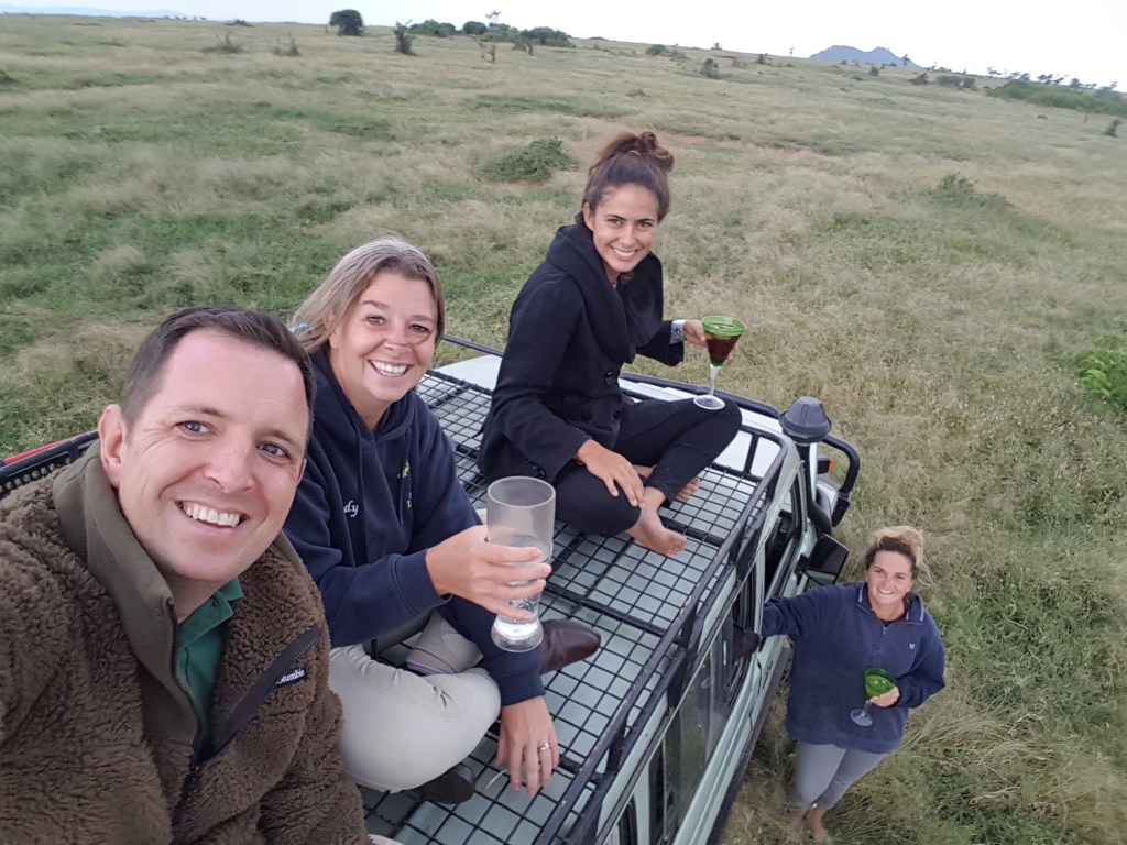 Upon our release from quarantine, the entire Nomadic Family Unit went to stay with our friends where they drove us out into the African bush and we were treated to sundowners in the savannah.