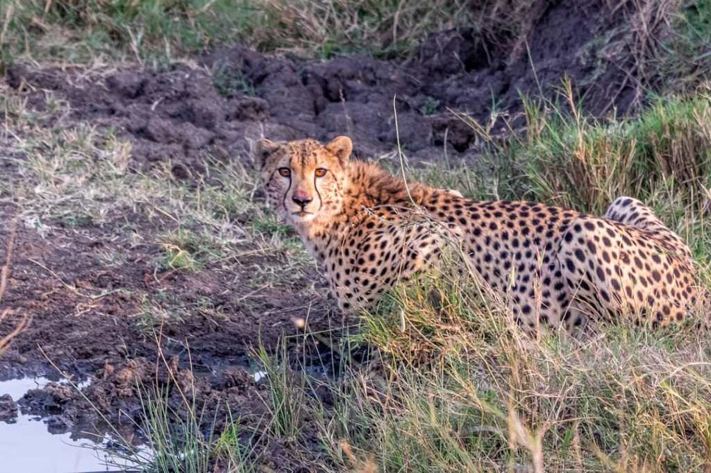 In addition to seeing these beautiful beasts, we were also exceedingly lucky to catch a glimpse of a solitary cheetah. A young male who’s belly was so full, it drooped along the ground whilst he took a drink from a stream. He had clearly just had a feed and when he was sated, he gingerly slunk off, his impressive spots melting away in the dense undergrowth.