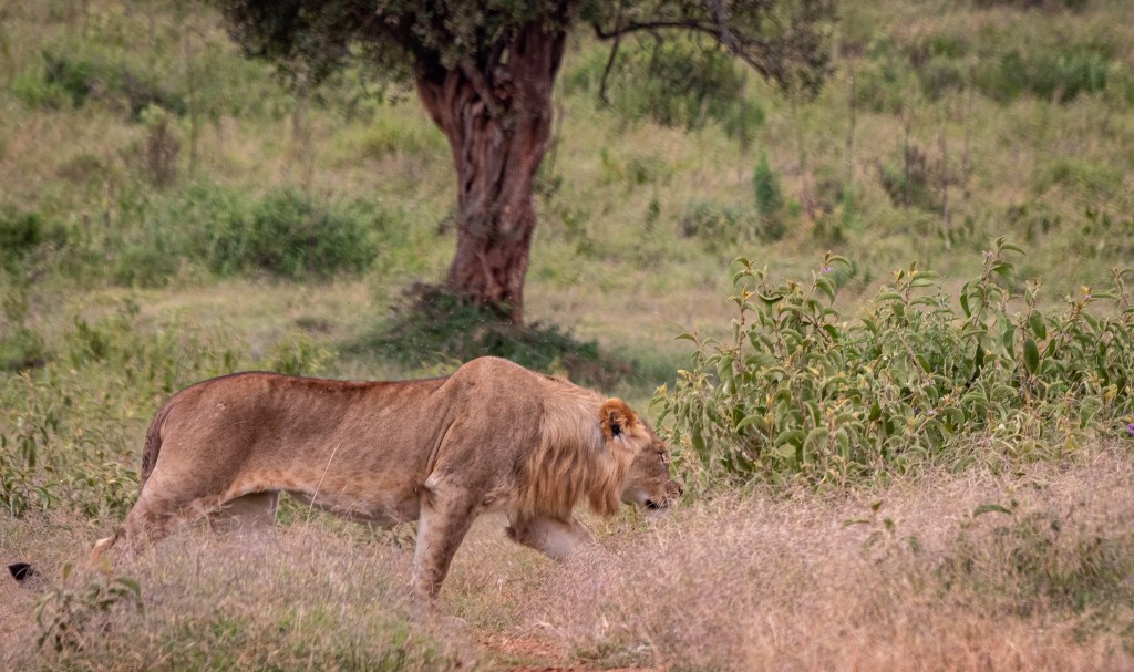 We continued on and as we rounded a bend in the road, there was movement in the bushes and as the vehicle was turned to the direction of the rustling noise, we caught fleeting glimpses in the headlights of the car of the very same lions that we had seen earlier. In the dark, they were much more aware of our presence with the grunting engine of the landrover and as we did not wish to cause them distress, we left them to the night and they melted away from sight.