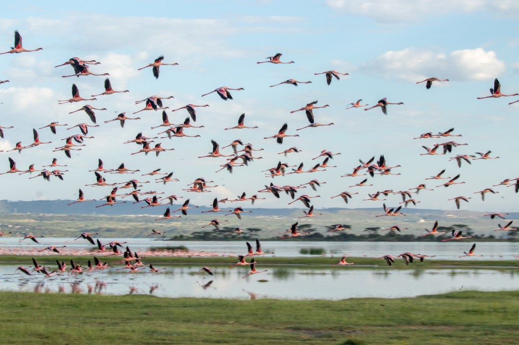 After our arrival at Soysambu Conservancy, we were thrilled to witness the shores of Lake Elementaita on our drive in. This is a soda lake in the Great Rift Valley in Kenya. The name ‘Elmenteita’ is thought to be derived from the Maasai word ‘muteita’ which means ‘dust place,’ a reference to the dryness and dustiness of the area. It was incredibly hot and easy to see why this name had been given to this great lake and its surroundings. The swathes of dust kicked up by the vehicle followed us relentlessly everywhere.