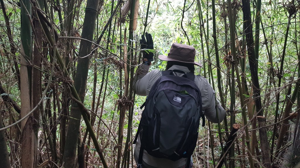 Elephants could be found too although how they got through the narrow muddy tracks through the dense thicket is beyond me. We clambered up steep muddy banks using tangled vines to pull our way up, we crashed through tiny gaps in almost impenetrable brush type fauna all the while taking delight in this safari-like-no-other. It was tough going, particularly with the altitude we were having to contend with but it was still worth every single step.