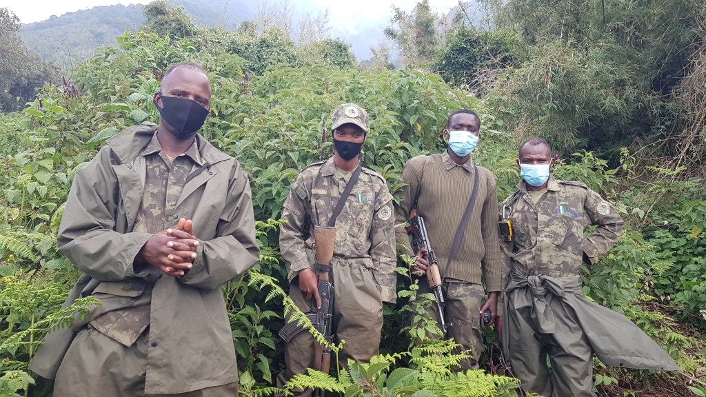 After about an hour of slow and steady hiking, we came upon four armed rangers who stood almost to attention, fully expecting our arrival. They had been marching ahead of us, unseen and silently tracking the gorillas so they stopped us, informing us that the gorillas were ahead of us by only a matter of metres. My heart skipped a beat.