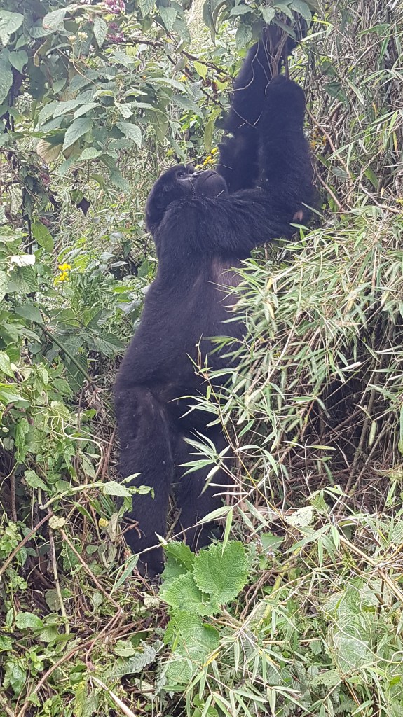 The gorillas are highly social and live in relatively stable, cohesive family groups and they are non-territorial but as Roger informed us, the dominant male, the silver back, would defend and protect his group or family often to the death if threatened. This briefing provided a fascinating insight into the behaviour of gorillas and we could not wait to get going.
