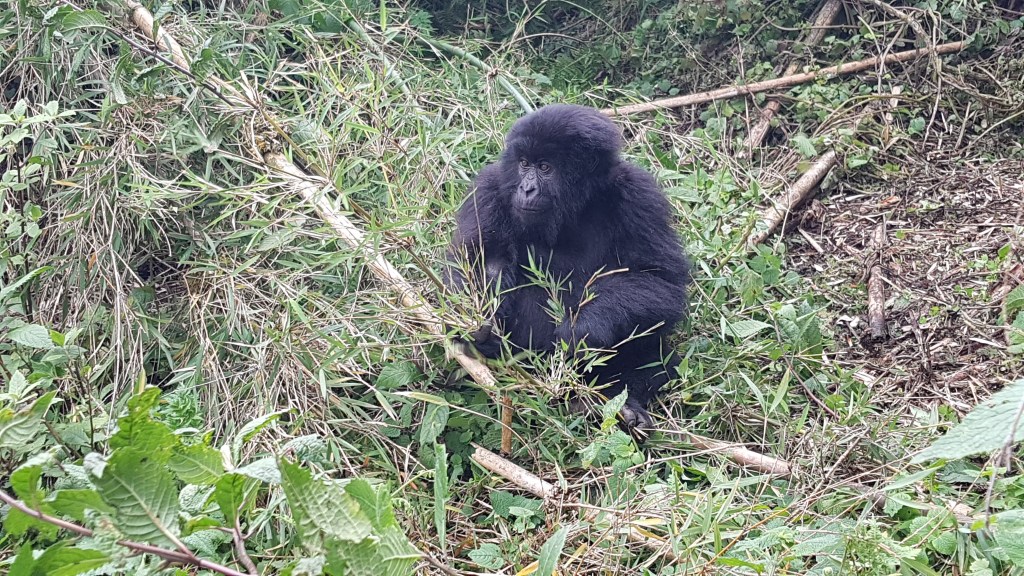 We were informed by the ranger, Roger that this gorilla family that we were privileged to have found was known as the Hirwa family. The word Hirwa means ‘lucky one’ in Kinyarwanda. There were sixteen members of this family, including one silverback. Amazingly, within this family was a set of male twins which was incredibly rare. They had been born in 2011 and were thriving against all the odds. It was these twins that we had come across, alongside another female. This family were known to wander freely between Mount Gahinga and Mount Sabyinyo and where we found ourselves in the jungle was literally on the other side of the mountain to the border with the Democratic Republic of the Congo, and only an estimated one kilometre from the border with Uganda.