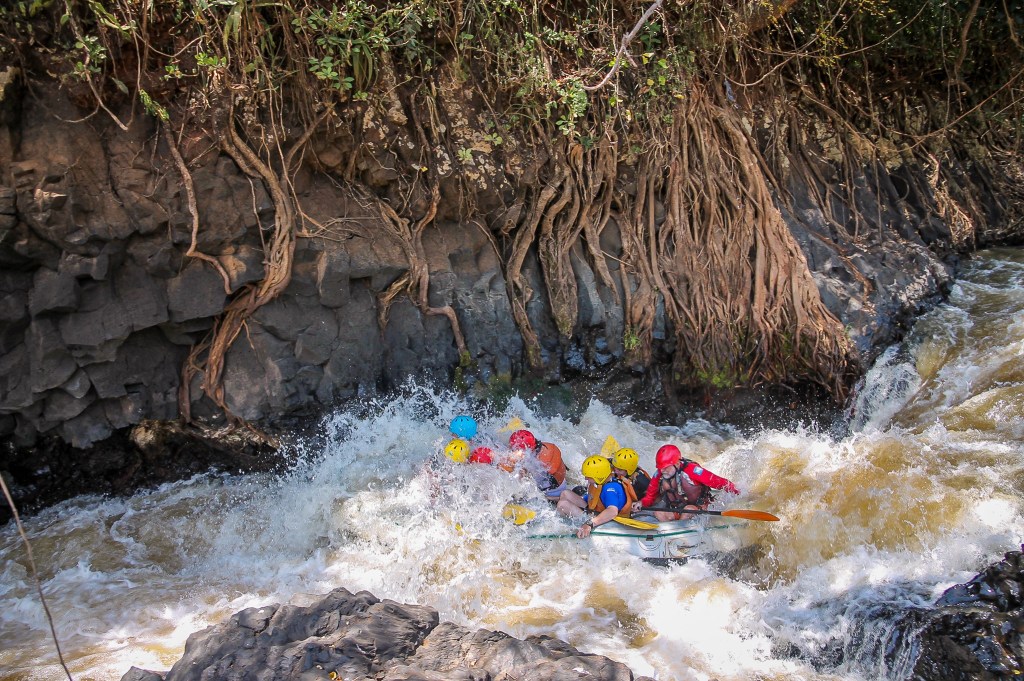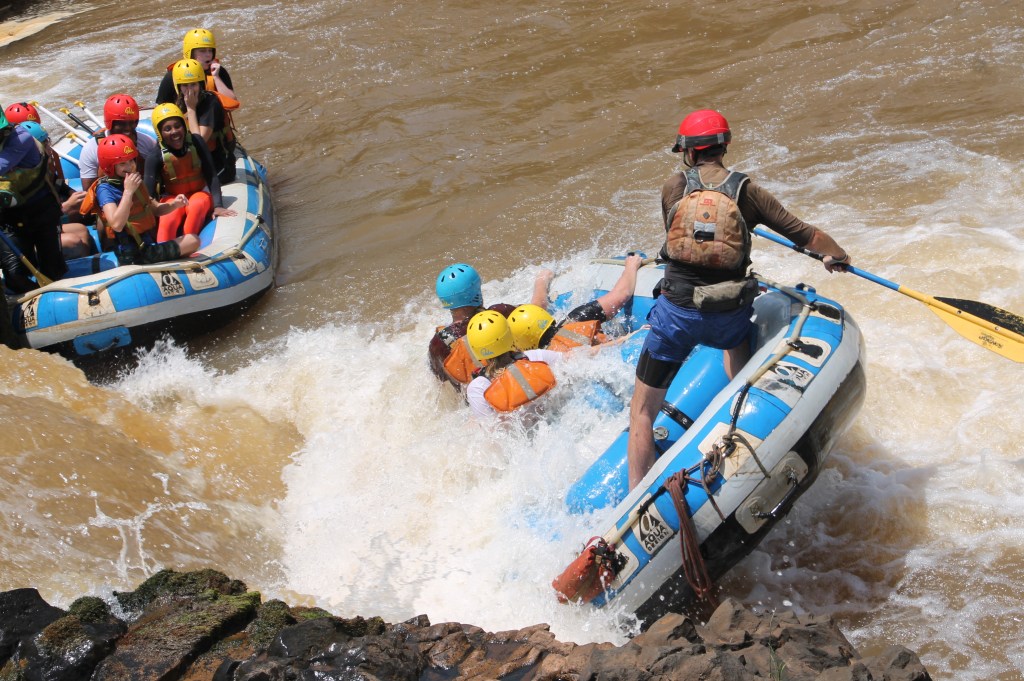 The trip starts with around 3 kilometres of ‘easy’ white water followed by a calmer section of around 6 kilometres. Thereafter follows a 7 kilometre section which starts easy but then comes the aptly named ‘no way back’ stretch with big rapids named Captains Folly, Can of Worms and Sphincter Flexor. Thereafter, you enter the ‘surf’ in the ‘fish eye hole’ before swimming a couple of minor rapids.