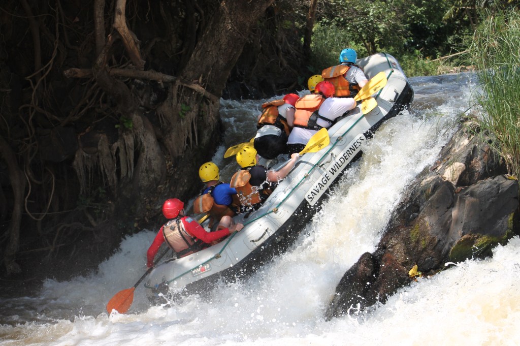 We boarded a bus and travelled some two hours to Sagana, a small industrial town in Kirinyaga District, found along the Nairobi-Nyeri highway approximately 100 kilometres from Nairobi in Kenya. We arrived at the venue on the banks of the Tana river in good time to enable us to get a caffeine fix. I was a little nervous but incredibly excited as to what was was to come, and the coffee helped to settle the butterflies in my tummy whilst we listened to a detailed brief provided by the professional guides at an organisation known as Savage Wilderness, who have for 25 years, specialised in creating “breathtaking experiences in one of Nature’s most beautiful environments.”