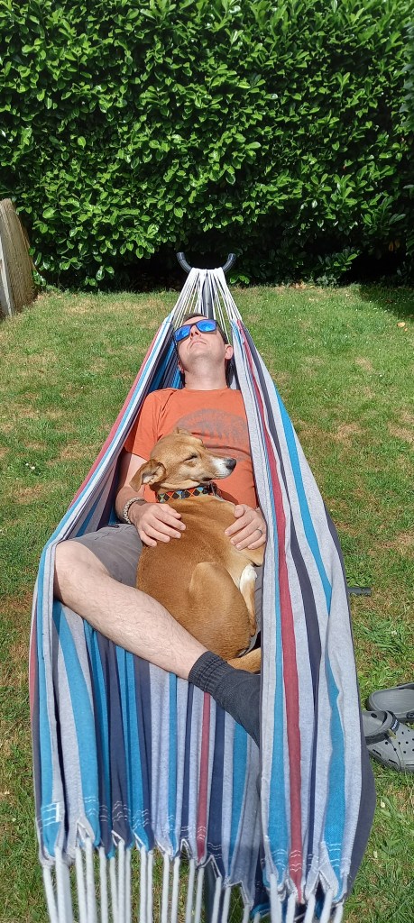 Such lazy days through the summer have been blissful, and I have also learned that Dad’s hammock is the best. Solo can’t jump high enough to get into the hammock so I get to snuggle into Dad as much as I like. Mum doesn’t enjoy the hammock so it’s me and Dad’s thing. I particularly like the fact that it rocks, although Dad doesn’t share my fondness for this.